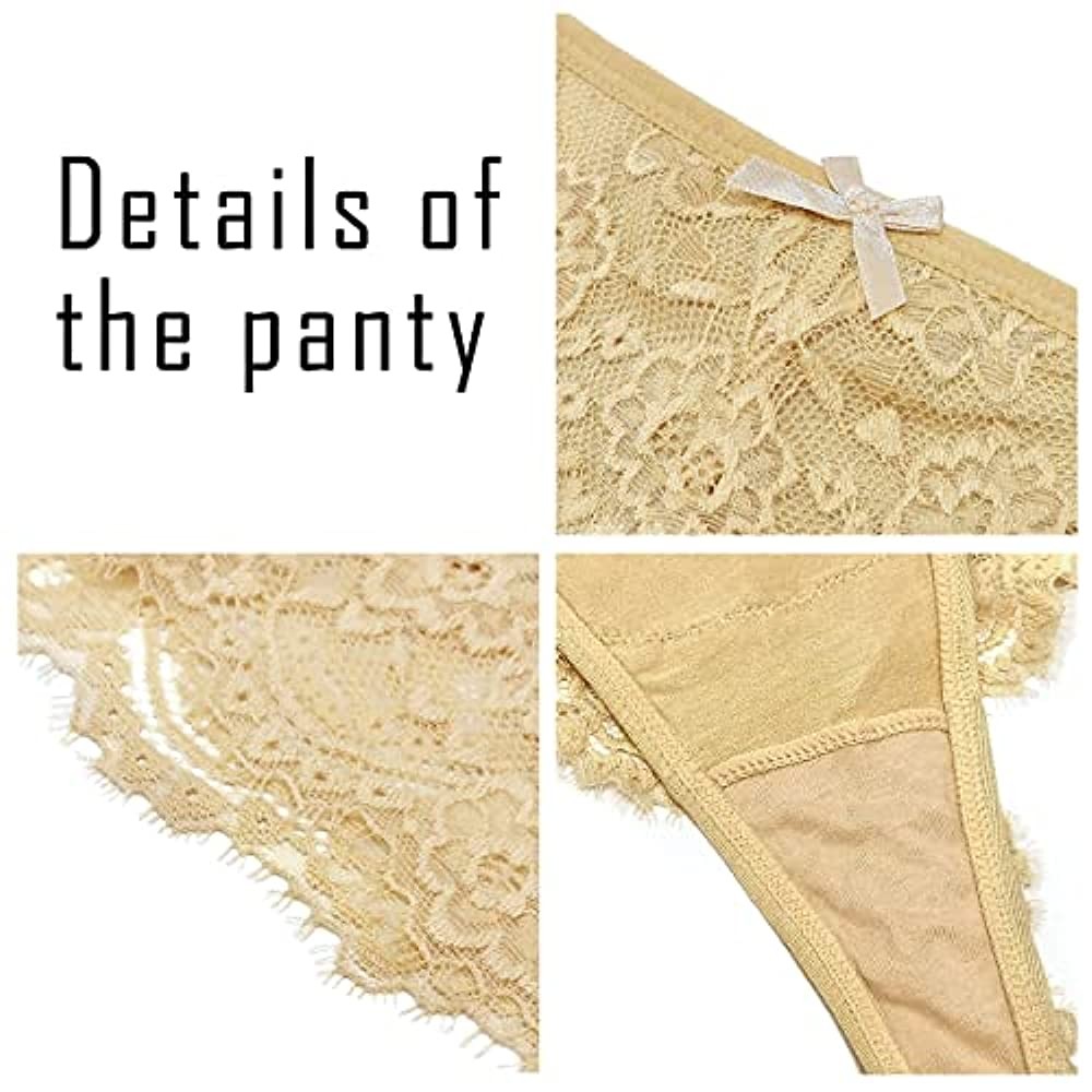 • 【Thong Panty】 Lace sheer panty with small bowknot decoration showsome cute sense. Soft and elastic lace fabric makes it comfortable andbreathable to wear.