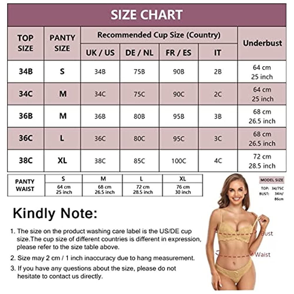 • 【 Package Included 】 -- 1 Bra + 1 Thong, Multiple colors for you to choosewith sizes ranging from 34B to 38C